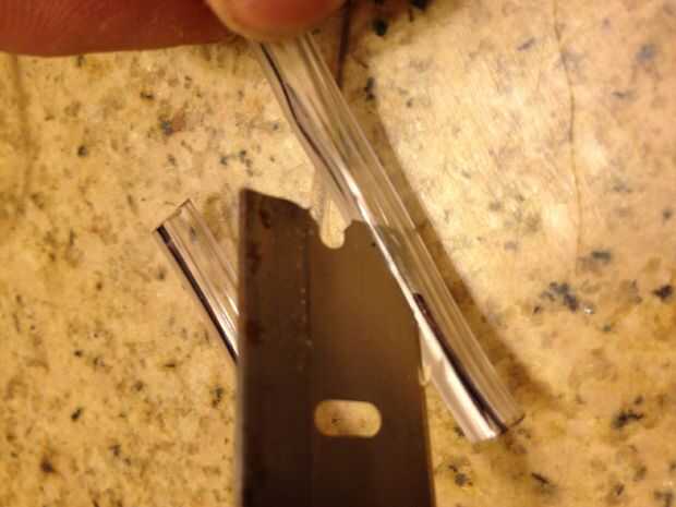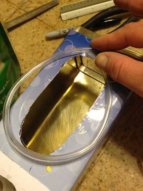 Conseguir algunos claros tales como la tubería se utiliza en máscaras de oxígeno. Cortar lo suficiente para ir alrededor del agujero. Marcar una línea recta sobre el tubo y luego la raja abierta. Utilice una pistola de pegamento caliente para fijar el tubo en la abertura de afilado. Cuando la lata será menos peligrosa.
