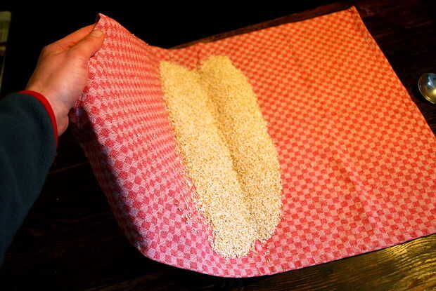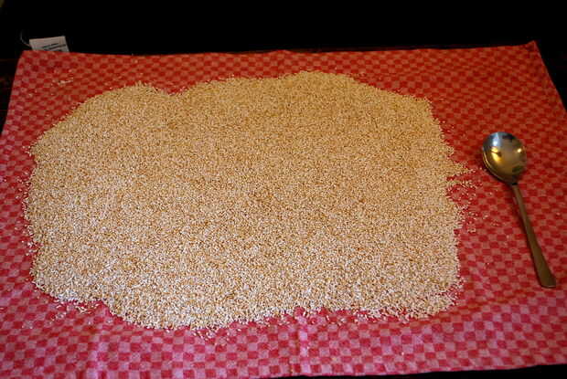 El mejor método que he encontrado es que estirar una toalla de té y distribuir la fresca hecha estallar amaranto sobre él.