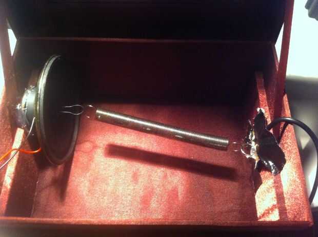 Probar primero si tu primavera llegar a ambos lados, y luego pegar el altavoz y piezoeléctrico en la caja!