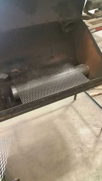 Soldado un trozo de metal desplegado a la tubería y en la parte inferior de la parrilla a las brasas en... ¡ Haga esto! deja esa pieza suelta por lo que se puede quitar para limpiar la ceniza. jaja... vista trasera es de 20-20. Elegí el mismo metal ampliado para crear el espacio de la parrilla... apoyo a la malla... Yo había soldado material redondo de 3/8 a la malla en un marco para que sostenga todo el peso.