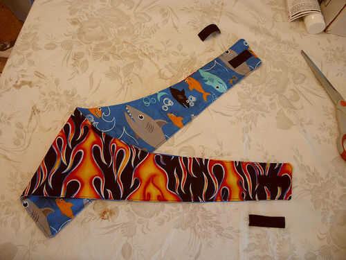 9. Velcro coser las tiras en las aletas del extremo; uno en lado A y lado B.