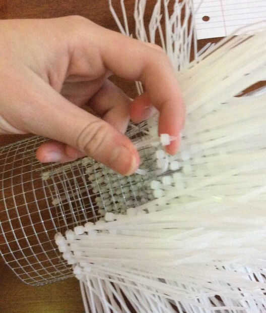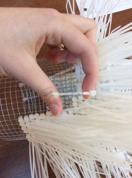Continúe añadiendo lazos zip hasta que sólo las superior dos filas para hacer. En este momento debería haber utilizado 900 bridas.