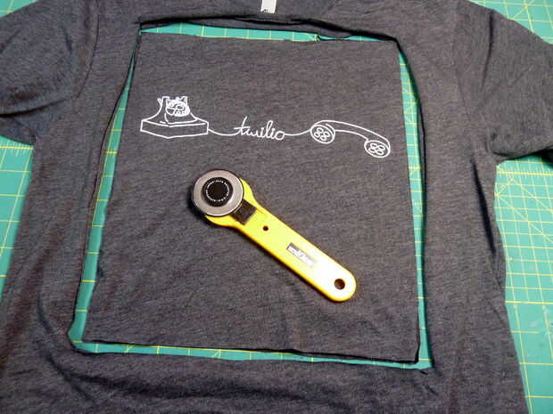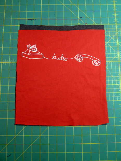 Las dimensiones entre rectángulos los dos camisas deben ser el mismo en tres lados, pero los rectángulos de una de las camisetas deben ser un poco más altos (mi gris uno era aproximadamente una pulgada más alta).