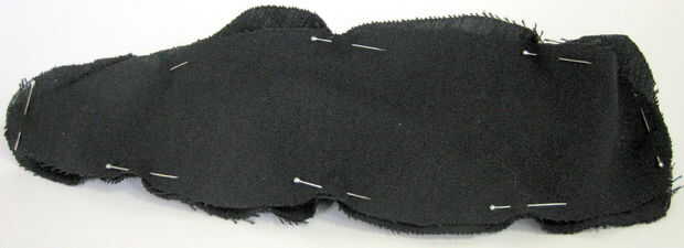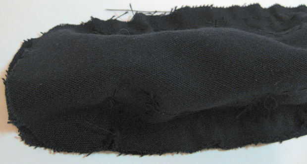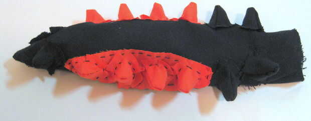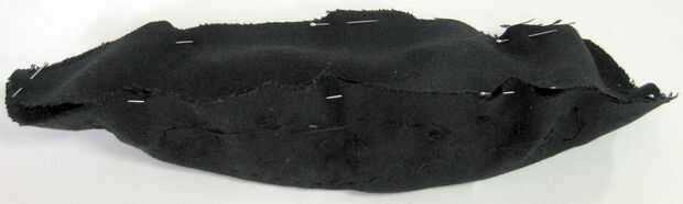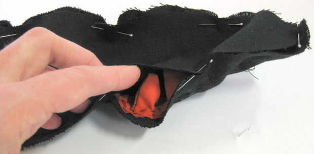 Ahora que te Sujete la parte superior de la larva a la base de la larva. Para hacer las costuras ocultas en el interior de la larva, colocar la pieza base sobre los cuernos sobre la pieza superior. Use alfileres de costura para unir los bordes como se alinee. Una vez que los bordes están alineados, coser juntos los pedazos de la base y parte superior, dejando un 1 cm de la costura por todos los lados excepto para la cabeza – no coser encima de la cabeza todavía! Una vez que se cose para arriba, voltear la larva adentro hacia fuera (a través de la cabeza).