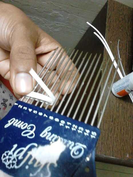 Tomar algunos papeles quilling y envolver el peine quilling. Tamaño no importa siempre y cuando sean del mismo tamaño. Hacer al menos 3 superposiciones. Hacer un montón de ellos.