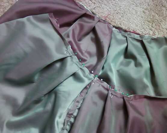 Tomar la primera marca de pliegue y corresponder a la siguiente marca. Hacer esto con cada línea hasta que hay no más izquierda. Hacer esto con todas las marcas, ambos lados para shell y guarnición. PIN. Coser todo alrededor. La mucosa los pliegues será realmente sobre el reverso de la fabric.*