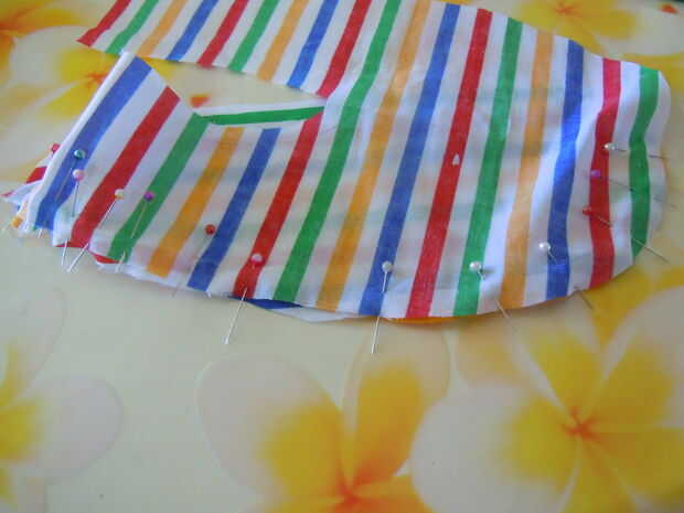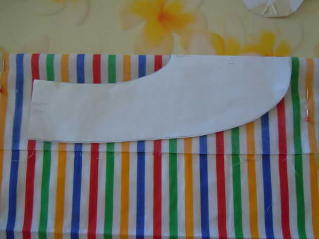 Con la pieza de patrón, doblar la tela de la guarnición lo suficiente como para el patrón de ajuste. Doble el patrón por la mitad y coloque el doblez a lo largo del doblez en la tela. Para marcar y añadir margen como antes. Repetir y cortar.