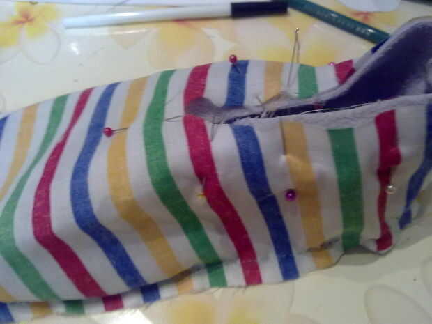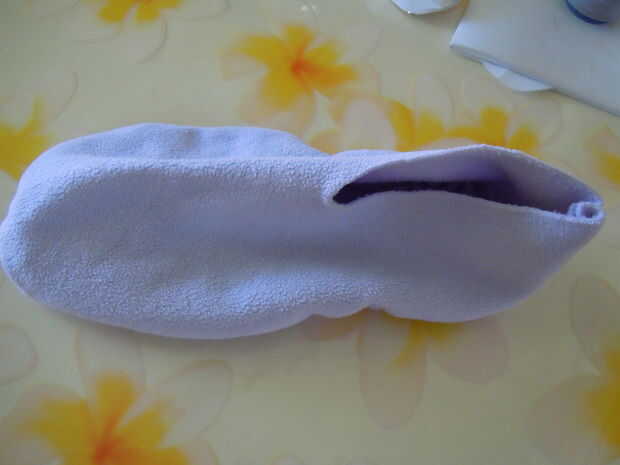 Tomar un par. Poner una parte dentro del otro, asegurándose de derecho lados juntos. Esto significa que usted puede ver las costuras. Línea de la costura en el talón, luego el pin la apertura Junta. Coser a lo largo, dejando una separación de 10cm. Vuelva el zapato a través de esta brecha.