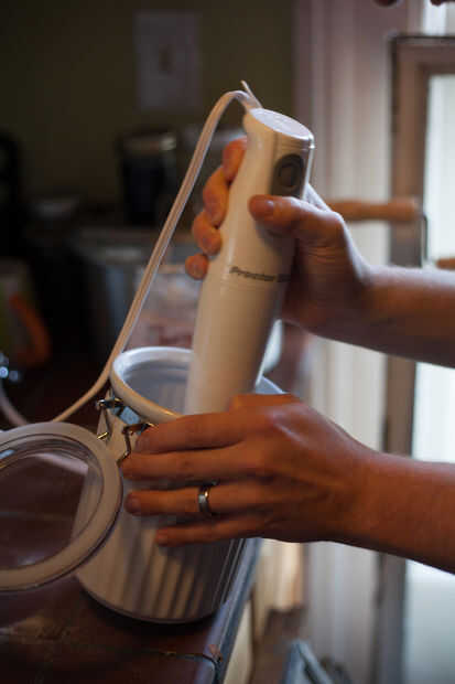 Combinan el peróxido y xantham goma en una licuadora, o en mi caso un recipiente de cerámica para el uso con una licuadora de palo. Mezclar durante 5 segundos a alta. Añadir la glicerina y mezcla durante 5 segundos. Deje que este resto de la mezcla por un minuto hidratar los ingredientes y luego mezclar otra vez durante 5 segundos más. Cuando estés listo para empezar a añadir el Oxyclean y mezcla otra vez. Lo que te queda es un gel que puede ser pintado en su superficie.