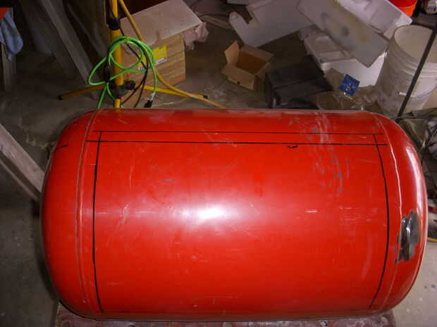 Luego vino el tanque de gas LP, esto tienes que tener mucho cuidado al cortar. Llené el tanque con agua clorada muchas veces diferentes con el fin de eliminar los gases, luego cuando fui a hacer el primer corte llené el tanque con agua por lo que no tendría las chispas dentro del tanque. Después de los primeros cortes no debe tener ningún problema así que puede drenar el agua.