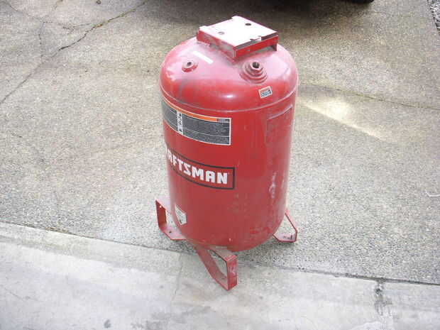 Quite las patas y base en el tanque de aire, luego el diseño de la abertura de la puerta y corte. Mide el pequeño tanque para determinar la altura de trabajo para el depósito de humo, luego había fabricado la base con ruedas para que puedo moverse.