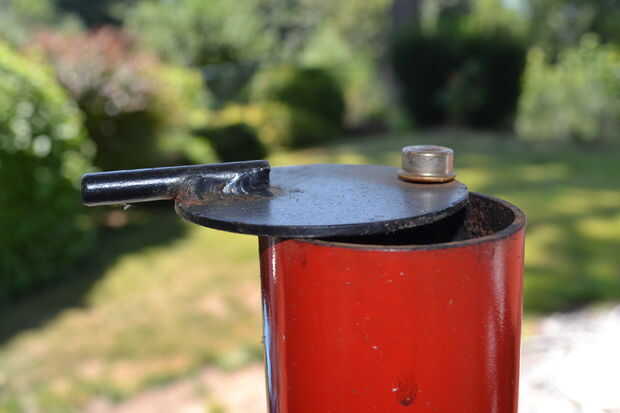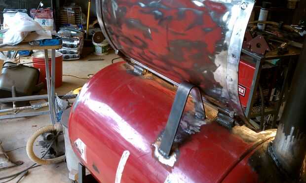 Usé un tubo de 3" de acero para la chimenea con una simple placa de acero con un perno soldado a un lado, para controlar el proyecto. Soldar una placa de acero de 2" como tope para la tapa, aviso la tapa con la placa de acero soldada con autógena al borde esto ayuda a sellar el tanque de humo.