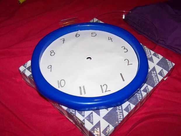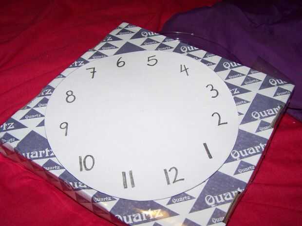 Luego, una vez seco el pegamento, formar un agujero en el centro del clockface, para permitir el acceso para el mecanismo.