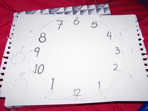 Primero pensé que sólo podía medir mi clockface y dibujar los números, como se muestra en estas fotografías.