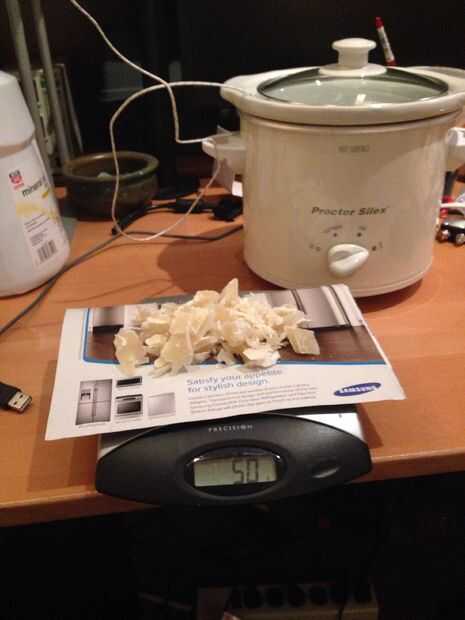 Mida una parte en peso de virutas de cera de abejas (lo hice 8 onzas)