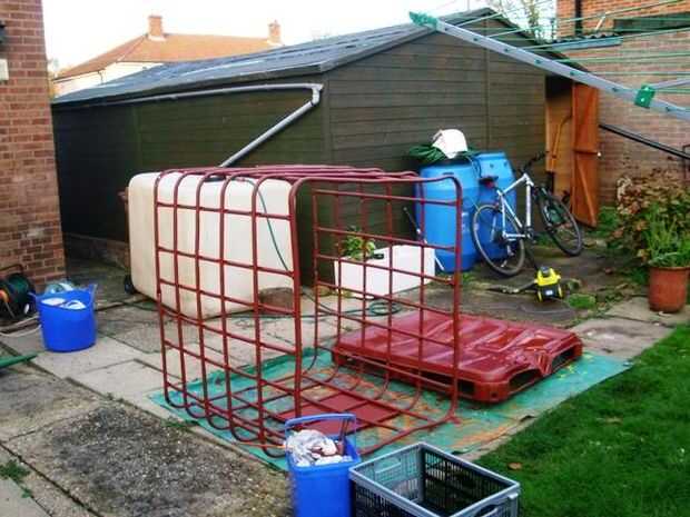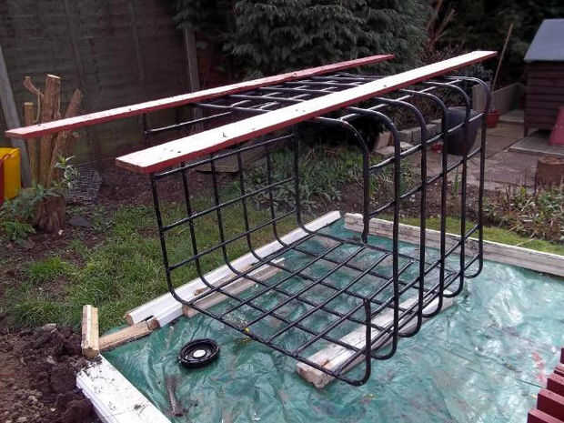 Una o dos semanas más tarde, conseguí a pintar el marco y plataforma de acero con algún esmalte de tractor negro brillo resistente a la corrosión: