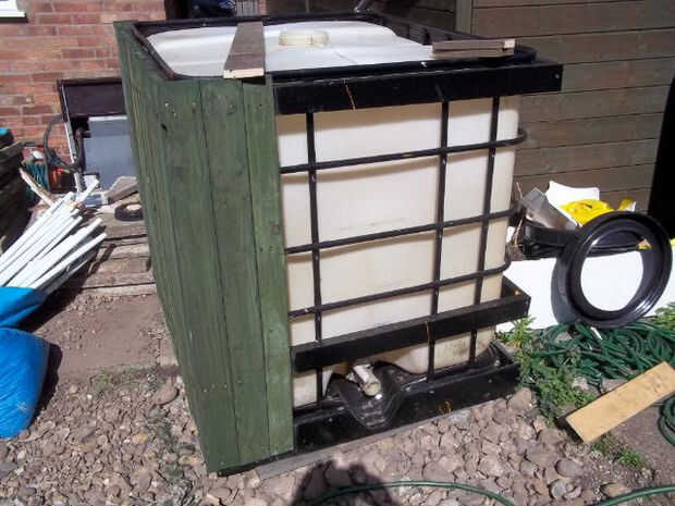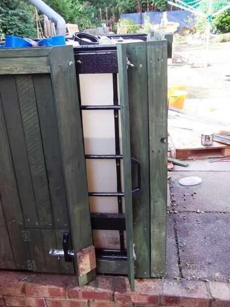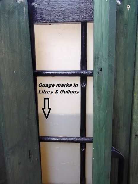 Mientras estaba fijar las planchas de revestimiento en su lugar, me di cuenta de que el tanque tenía marcas del medidor en litros y galones moldeadas en el plástico, así que hice un par puertas de visión por lo que podríamos eaisily comprobar el nivel de agua.
