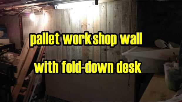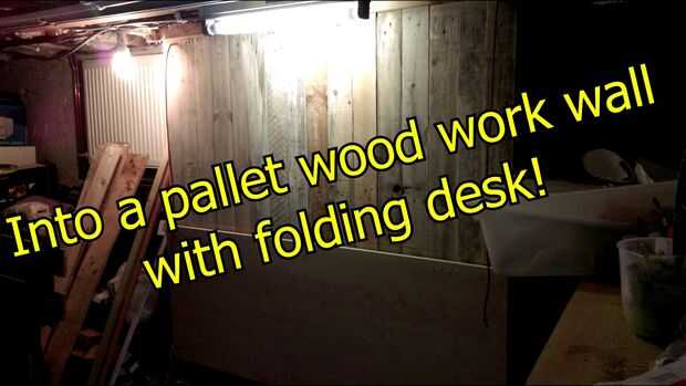 Necesidad de un espacio para sentarse y trabajo (soldadura, dibujo etc.) y tener un pequeño montón de madera de palet, decidí añadir un toque decorativo a una pared de paneles con la madera de palet y añadir un escritorio plegable para ahorro de espacio.