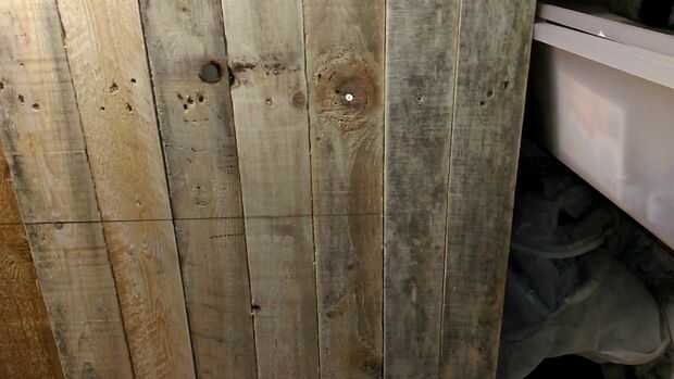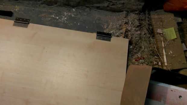 Mido en la pared para que los agujeros de las bisagras horcajadas 2 tablas - 2 agujeros en cada tablero - para difundir el estrés.