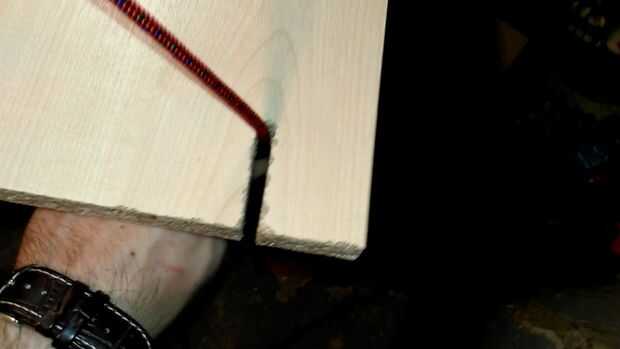 A continuación, utilice una sierra de calar o sierra de espiga para cortar un canal el lado y la cuerda a través del canal de alimentación.