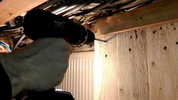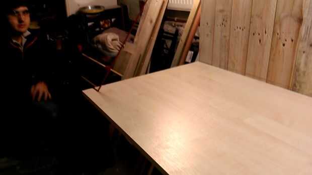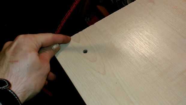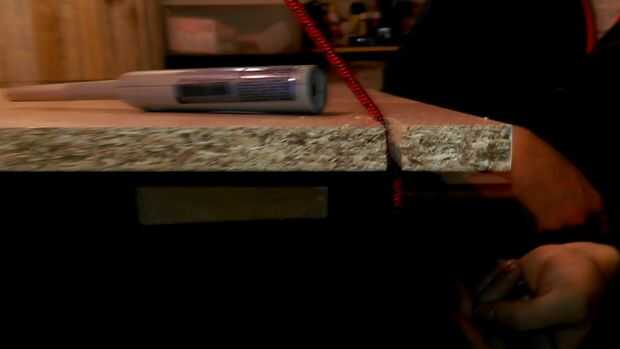 Entonces, perfore un orificio de 7mm 5cm en de las izquierda e inferior derecha esquinas inferiores del tablero del escritorio.