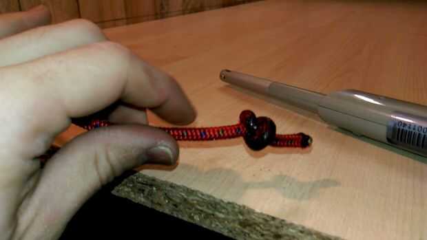 Utilizar un encendedor para derretir el final y anudar la cuerda de nylon.