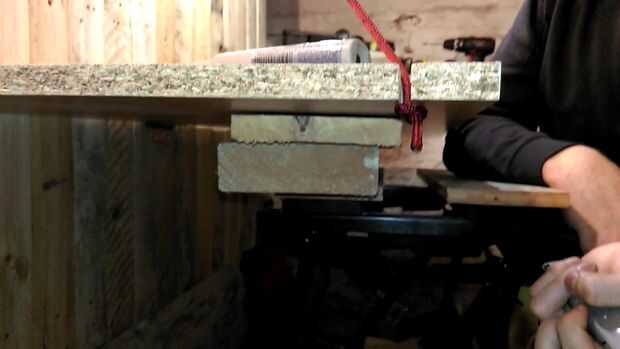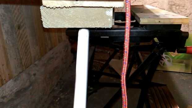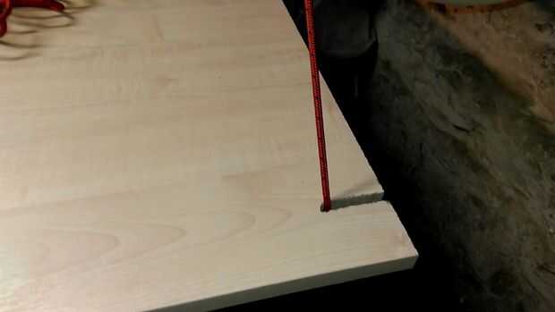 En la parte superior de la pared de la plataforma, perfore un orificio de 7mm (o lo suficientemente amplia como para la cuerda pasar a través) en el centro de la parte superior de los paneles izquierdos y derecho (ver foto).