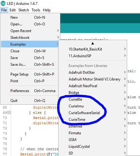Usted puede experimentar con estas bibliotecas. Utilice los códigos de ejemplo para encontrar comandos ya que son muy fácil de usar y puede ser implementado en otro proyecto, por ejemplo RTC o BLE.