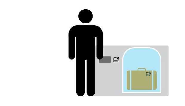 El punto de entrega pide 'Por favor, coloque su bolsa'. Cuando usted pone su etiqueta (eres bolsa con la etiqueta de RFID) muestra toda la información: el tamaño de su equipaje, información personal e información de vuelo. Porque el tamaño de su equipaje ya está en la etiqueta de RFID, escanear el equipaje de dimensiones ya no es necesario. Porque la información ya se encuentra en la etiqueta de RFID, una etiqueta impresa ya no es necesaria. Ambos resultan en un proceso más rápido para el pasajero y un punto de entrega más sencillo.