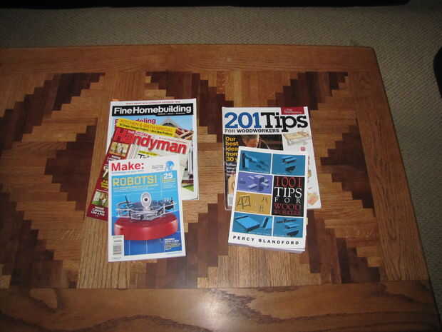 La primera foto muestra portadas de las revistas de carpintería ocho Estados Unidos que se publicaron regularmente. Todos de estos incluyen un "De lector consejos" característica. Como Instructables, estos consejos van de simple a complejo, pero generalmente es una idea útil o dos.