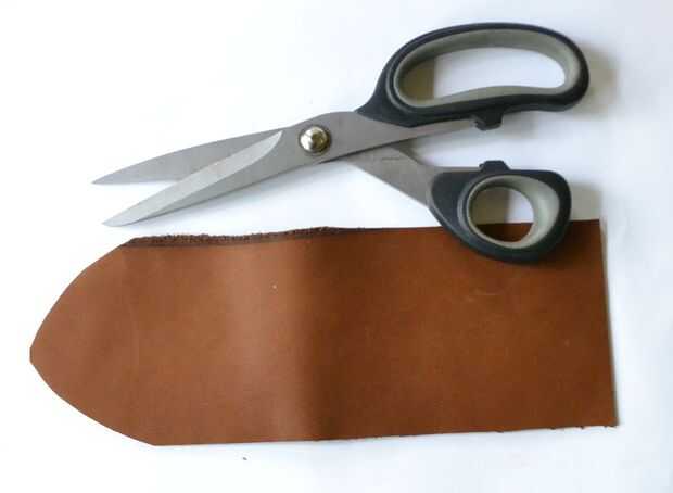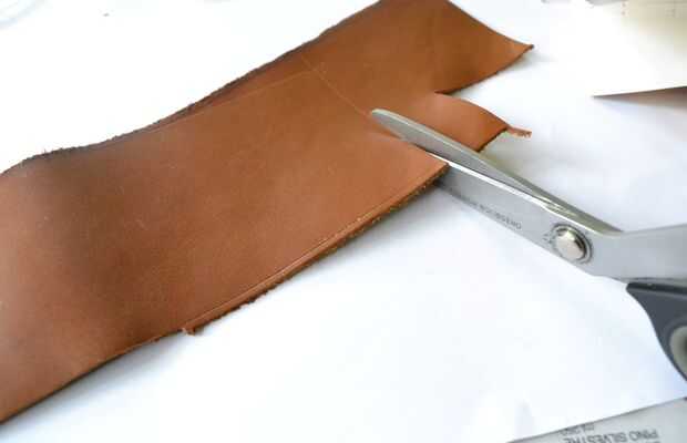 Cortar el cuero en un largo rectángulo, con un lado plano y otro redondo, bastante envuelto todo el camino alrededor de los libretes, y ligeramente más ancha.