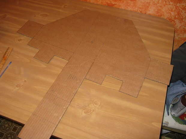 Ahora transferir el patrón de la plantilla de cartón sobre la cartulina real va a utilizar o papel de carnicero.  Ahora cortar el cartón hacia fuera usando tijeras o cuchillo del exacto.