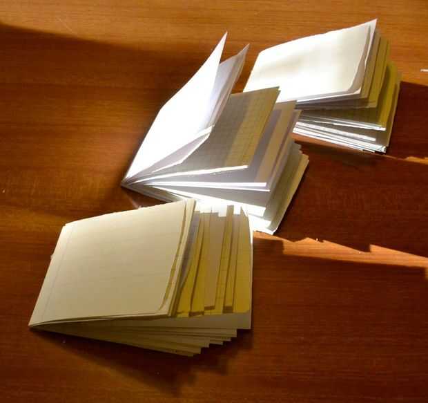 Doblar por la mitad cada piezas y formar algún folleto.