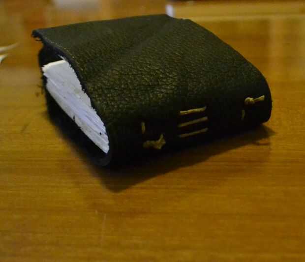 Y en este momento (después de que ya lo hice y pensando hacia atrás), se sugiere también para agregar una carpeta resistente entre las páginas y el cuero, como se puede ver en el paso 7 de mi diario de cuero tutorial.