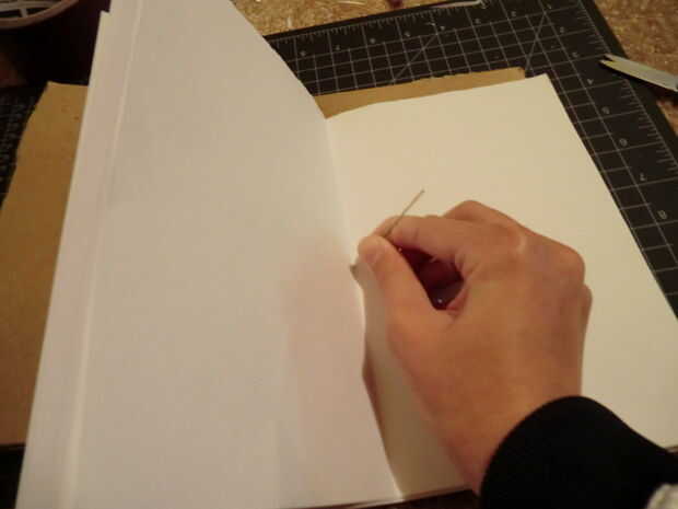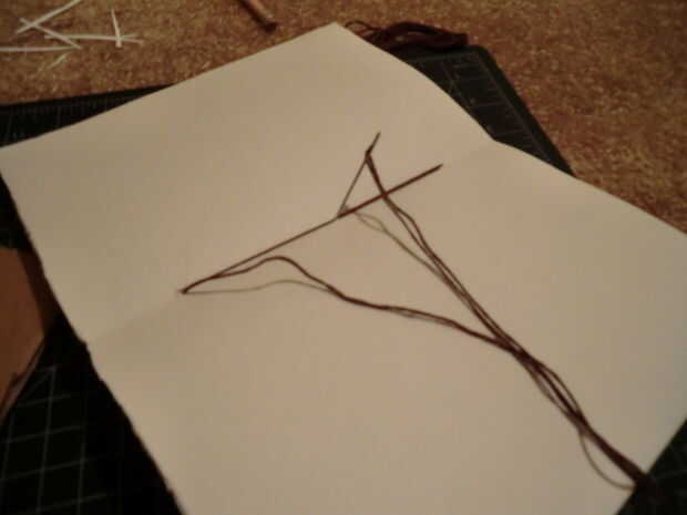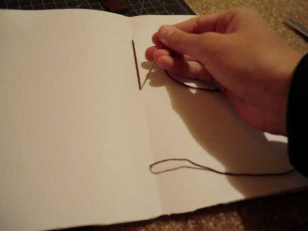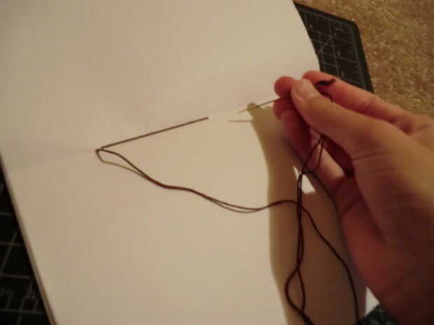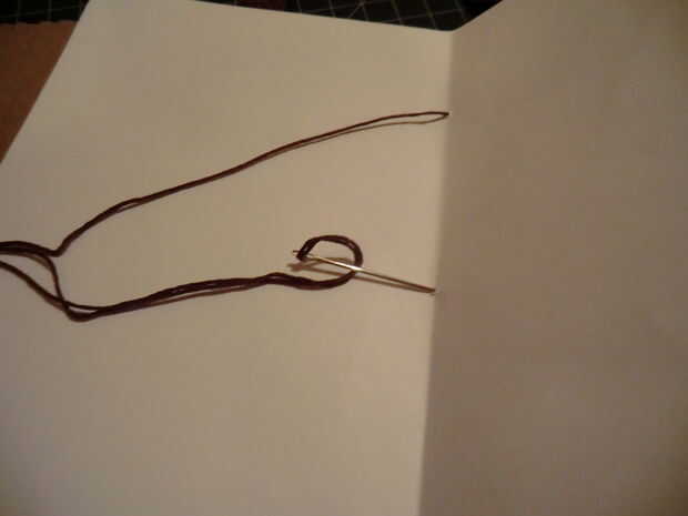 Ahora solo hilo su aguja con bordado de seda. Nudo al final. Tenga en cuenta que se verá mejor si utilizas un hilo de bordado que coincida con su cinta. Palillo de la aguja a través de su primer agujero desde la parte posterior para que el nudo se ocultará más tarde. Usted puede coser a través de los agujeros sin embargo te gusta y sin embargo muchas veces te gusta, pero puedes mirar mis fotos para ver cómo mina. Después de haber terminado la costura, nudo en la parte posterior para que no se vean.