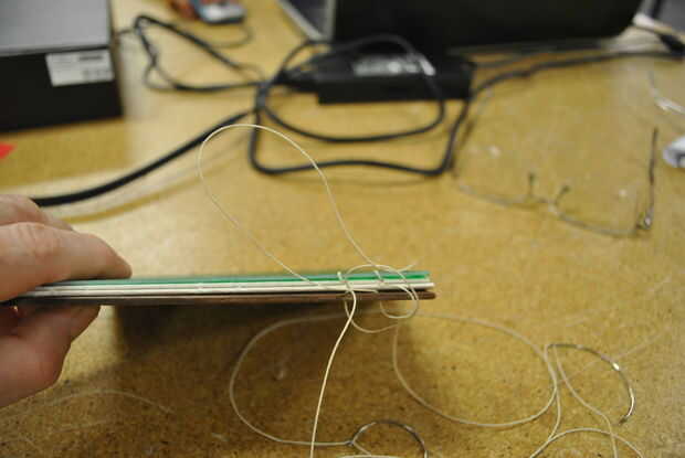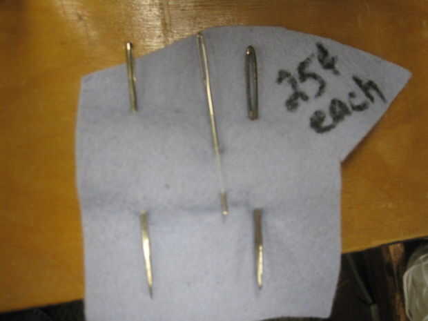 Dos notas sobre las agujas. Utiliza, utiliza agujas rectas, utilizando para hacer agujeros en las firmas y para aprender a atar nudos. Compré una aguja curvada nueva porque yo no podía fácilmente fuente una usada. Recuerde, los orificios de la cubierta deben ser suficientemente grande para que la aguja pase a través y no más.