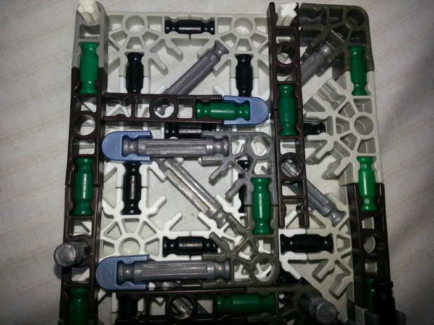 La banda de goma envuelto dentro del conector gris en la parte inferior y atada al extremo opuesto. Esto tirará el conector gris hacia ella, causando que el sistema gire. Esta rotación hará que las dos piezas de la foto 1 y Foto 2 para subir, empuja la munición mayor. Sin embargo, ya que no es una administración directa de la fuerza, la fuerza es casi inexistente. Es la belleza de esta revista: la función sin las desventajas de la fricción adicional