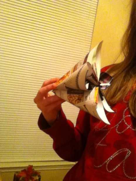 Herramientas y materiales• papel toalla rollo de núcleo• Tijeras• Botón• Pegamento de papel• Página de papel (puede ser reciclado de un viejo libro o revista)• Bolsa de papel marrón• 28 calibrador de alambre (o alambre que se puede doblar y manipular