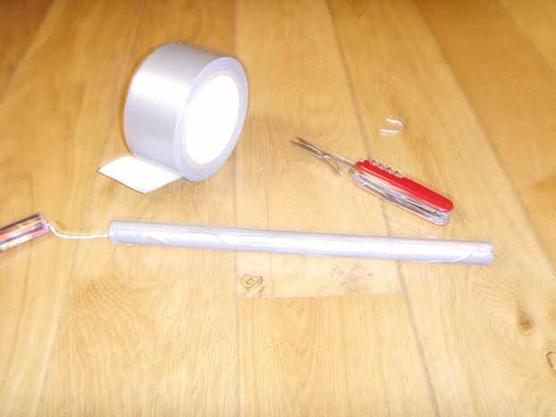 cortar un trozo de cinta del conducto la longitud de uno de los nunchucks y rodillo