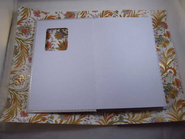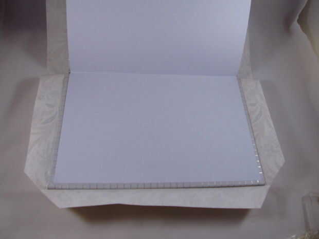 Poner el cuaderno abierto en el bonito papel que desea utilizar. Cortar dejando unos 5cm (2") alrededor.