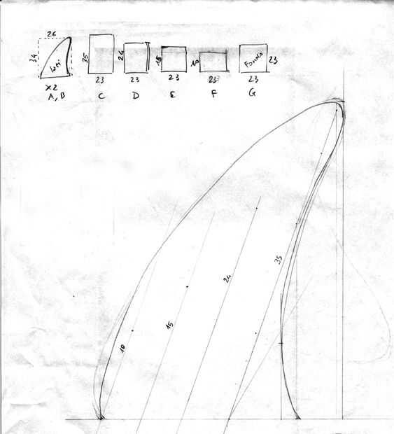 Diseñé un plan del panel lateral en escala de 1:2 con Plaza y metro. Esto era útil para trazar la frontera redondeada sobre el tablero de madera contrachapada cruda y para determinar la posición exacta de los paneles en los pasos de montaje. Las dimensiones de los otros paneles (fondo y separadores) se calcula simplemente y luego trazadas sobre la madera sin un plan preliminar de la escala. Las piezas más artísticas y los bordes redondeados fueron diseñados a mano.
