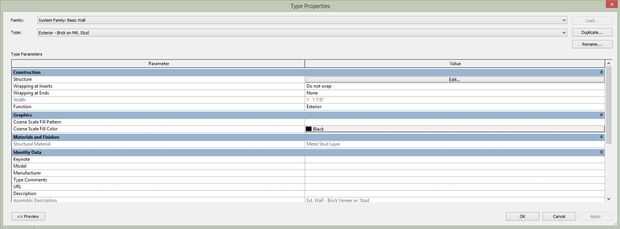 - Se abrirá el cuadro de diálogo "Propiedades de tipo". Usted desea duplicar el muro que está siendo usado, así que haga clic en duplicar y renombrar la pared.