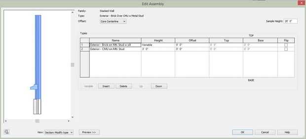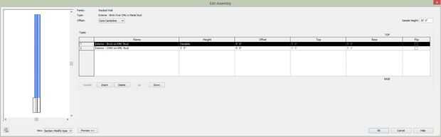 Aparecerá el cuadro de diálogo "Editar Asamblea". Esto demuestra lo que paredes conforman la apilada de la pared y qué orden que se encuentran en. También puede cambiar alturas específicas de paredes.