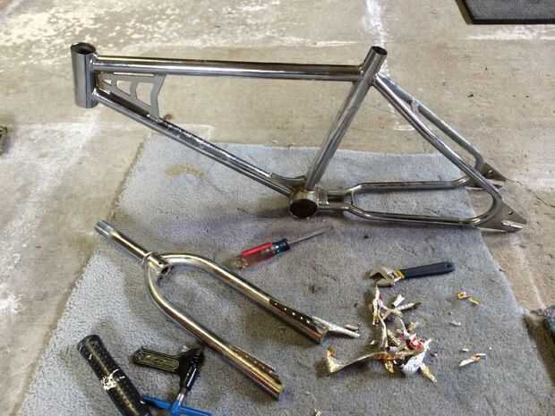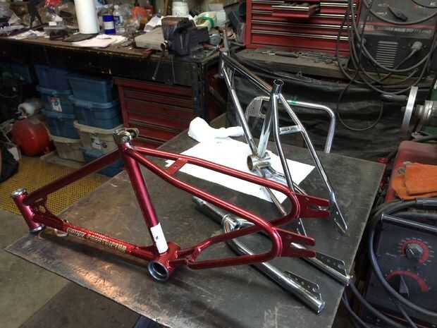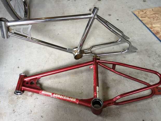 Lo bueno de un montón de bicis más viejas, particularmente bicicletas BMX, bicicletas es que no requiere ninguna herramienta especial para desmontar. El marco de cromo era realmente en forma espectacular. Me pareció una pena pintarlo. Encontré un chico localmente por lo que decidí tenerlo cubierto polvo. Yo peladas detrás la decoración original en el marco del constrictor que podríamos tener una idea del color exacto. Candy Apple Red es!!!!!! Mientras esperaba para que el marco que va a pintar, puso a trabajar en Ebay encontrando las siguientes partes fundamentales.