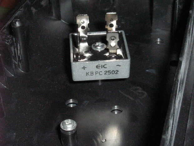 Bueno, generalmente es un arreglo de 4 diodos que actúan como policías de tráfico, dirigiendo todos los electrones que van en una dirección a una alambre (el alambre negativo, normalmente negro), no su lazo en el circuito y volver a través de otro cable (el cable positivo, normalmente rojo).