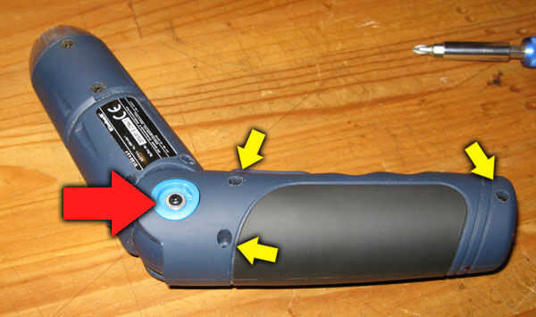 he cambiar mi viejo destornillador eléctrico de NiCd con litio barato uno ($12,50).Pero mi nuevo destornillador eléctrico tiene gran problema por lo menos para mí.Cuando presiono en la parte superior del interruptor desatornilla pero solía cuando emp
