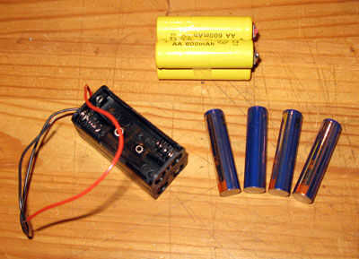 El antiguo paquete de baterías hijo 4 pilas AA de NiCd, de 600 mAh, soldadas entre sí, nosotros lo vamos a sustituirlas por 4 AAA de NiMh y con una carga de 1200 mAh, el voltaje es el mismo por batería (1, 2V), así seguiremos usando el cargador viejo. También las vamos una para portapilas más nada de poner en las Naciones Unidas sin tener soldarlas.