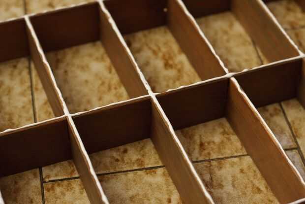 Cuando se pegan los divisores pueden Unte pegamento en un lado y poner fondos en ellos. Con una herramienta pesada o recipiente manténgalos pulsados hasta que se seque el pegamento.