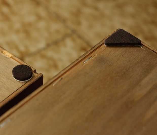 Fondos de las cajas necesitan ser asegurado, así que añadí algunas grapas del metal con una pistola de grapas útil. Luego coloqué algunos de fieltro en las esquinas.