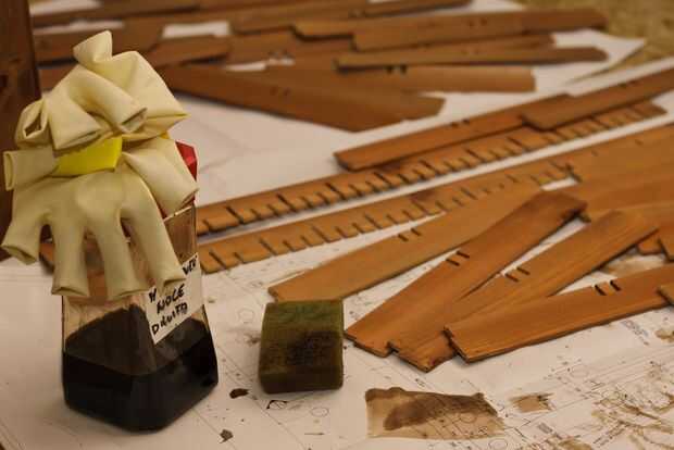pinté todas las piezas con mordientes para agregar un aspecto mejor, visualmente más y vivido. Use una esponja para hacer más rápido el proceso de pintura.